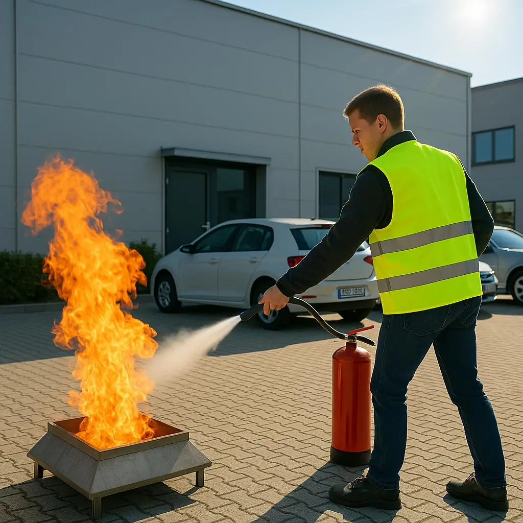 In jedem Betrieb sind ausgebildete Brandschutzhelfer gesetzlich vorgeschrieben. Unsere praxisnahe Brandschutzhelferausbildung vermittelt alles, was Mitarbeitende im Ernstfall wissen und können müssen. Dazu gehören Grundkenntnisse zum vorbeugenden Brandschutz, das richtige Verhalten im Brandfall sowie die Handhabung von Feuerlöschern in einer realitätsnahen Übung. Unsere Schulung erfolgt gemäß DGUV Information 205-023 und erfüllt alle Anforderungen für Unternehmen aus Industrie, Verwaltung, Pflege und Bildung.